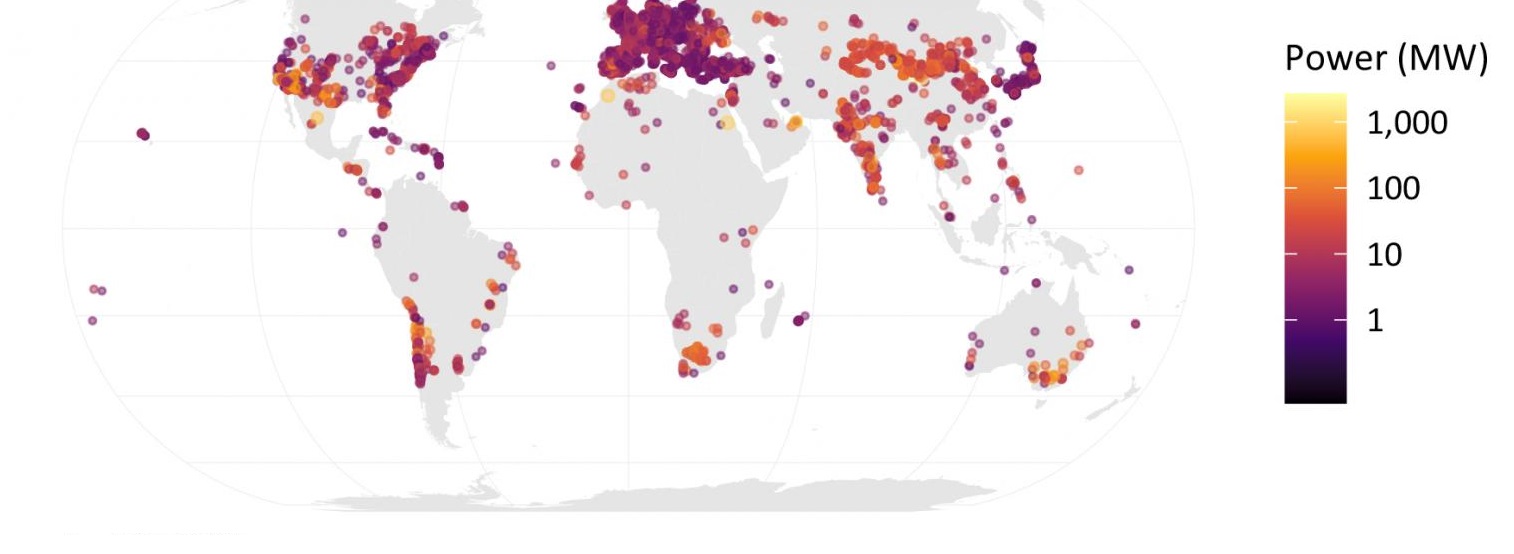 Deux nouvelles cartes montrent l'emplacement des principaux parcs d’énergies verts, solaires et éoliens, dans le monde. Elle est publiée dans la revue Scientific Data, par des chercheurs de l'Université de Southampton, Angleterre.